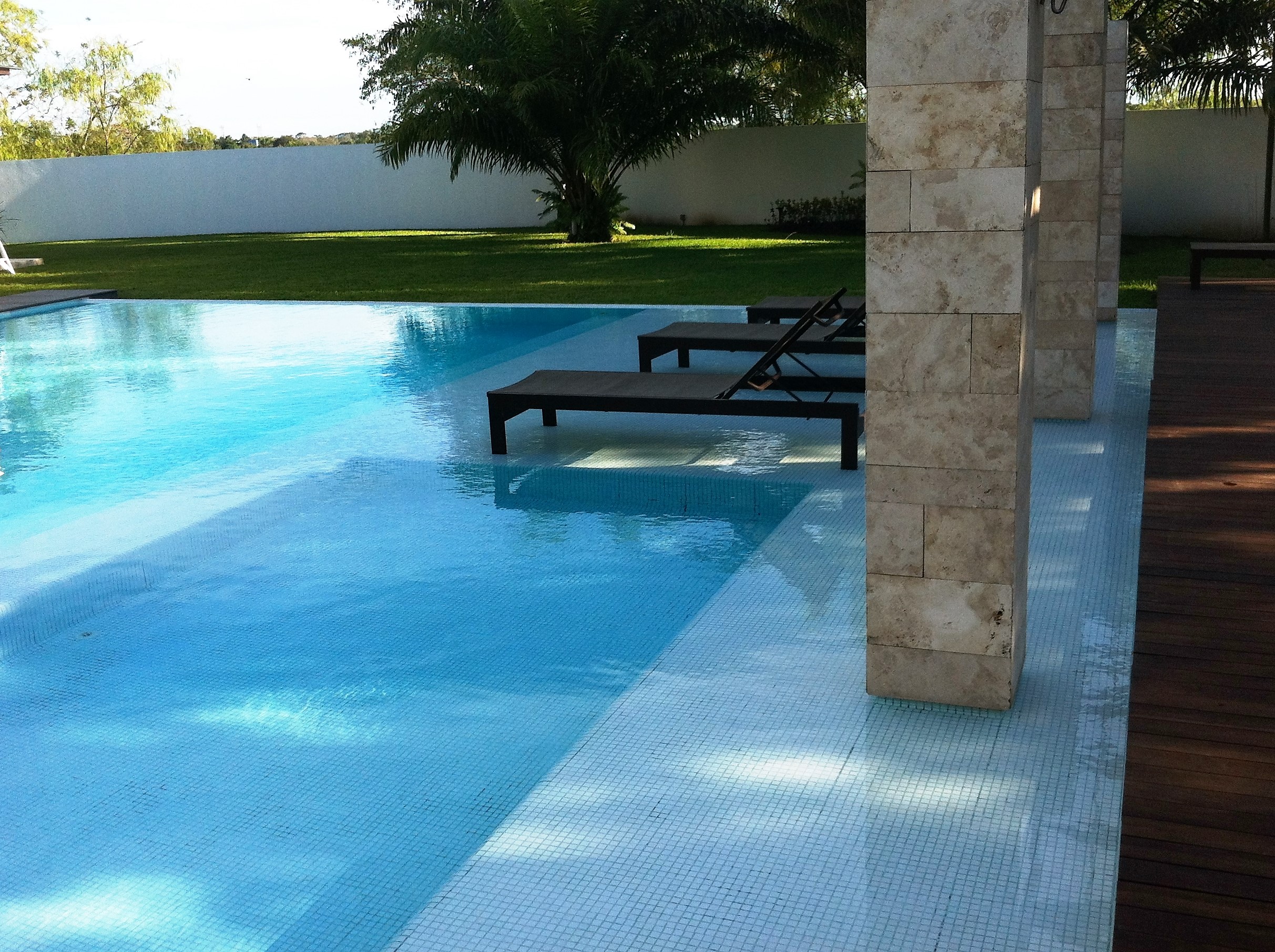 Distinguidas por su belleza, calidad y versatilidad, las albercas de acabado de mosaico veneciano cuenta con amplia gama de Colores, Mezclas, Esfumados, Figuras y Cenefas diseñadas para satisfacer los gustos mas exigentes de nuestros clientes