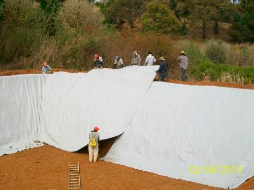 El geotextil es un material textil plano hecho a base de fibras de grapa de polipropileno y diseñado con determinadas características de resistencia y porosidad dando la solución necesaria de protección de la geomembrana de PVC. Se adaptan fácilmente a superficies de suelo o superficies de zanja, permitiendo una instalación libre de problemas.