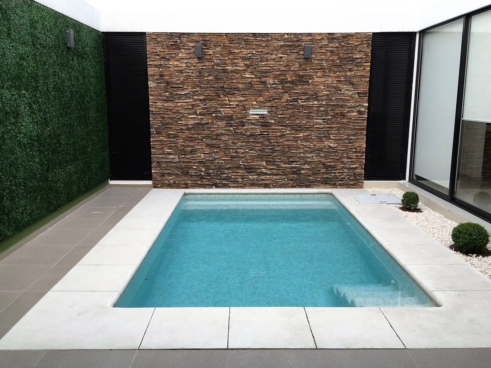 Terminadas con acabados de origen europeo, caracterizado por su alta durabilidad y bajo costo, acompañado con las ventajas de una mayor rapidez en la construccion y menor costo en obra civil, resultando una opcion economica y por lo tanto mas accesible para nuestros clientes, otorgando la misma funcionalidad de cualquier alberca.
